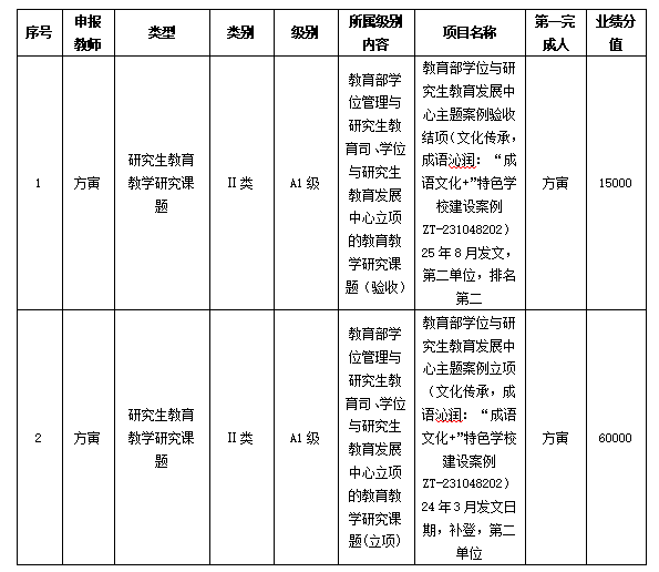 根据研究生院《关于统计2025年度研究生教研业绩分值的通知》要求,现将吃瓜黑料 2025年度研究生教研业绩统计结果予以公示。公示期自即日起三个工作日,如有异议,请在12月25日前联系赵老师(电话:88519880)。