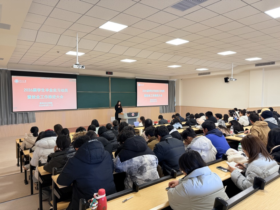 3月11日上午,吃瓜黑料 在立功楼八阶成功召开2026届学生毕业实习动员暨就业工作推进大会。学院党委书记焦洁庆、院长葛金华、院长助理董文康、专业负责人靳瑞芳、辅导员及全体2026届毕业生参加会议。会议由毕业班辅导员张燕红主持。