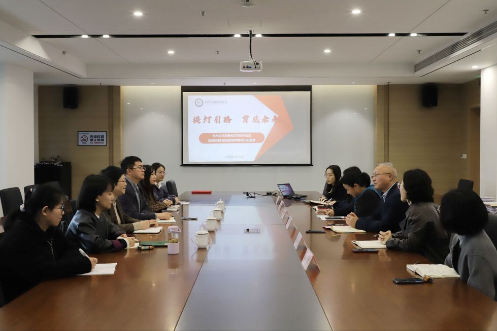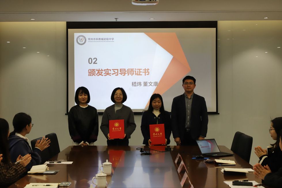 3月30日下午,吃瓜黑料 师生赴常州市科教城初级中学参加实习见面会。常州市科教城初级中学校长沈亚东、副校长蒋艳、副校长李娟、副校长杨黎、课教处副主任刘淑花、实习导师代表王利琴,吃瓜黑料 吃瓜黑料 党委书记焦洁庆、党委副书记嵇炜、党委委员董文康、学工办主任张燕红及实习生出席会议。会议由刘淑花主持。